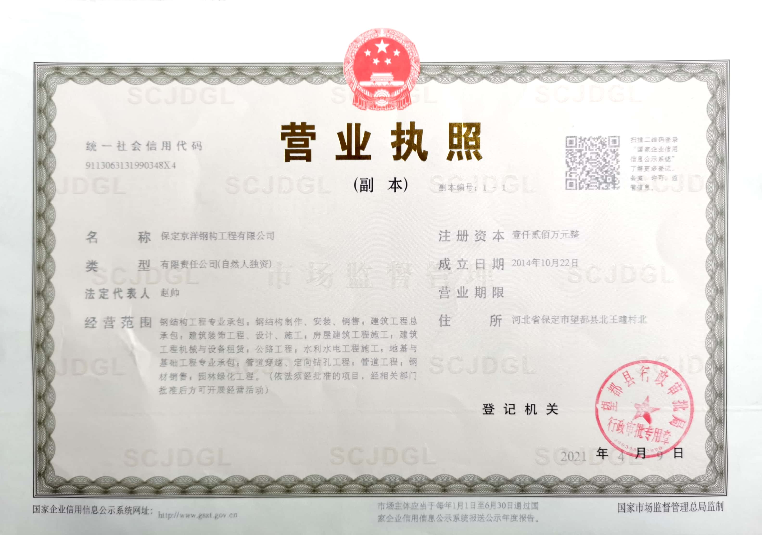 保定京洋鋼構(gòu)工程有限公司位于千年古縣望都。望都縣處于京津冀核心區(qū),是對(duì)接京津的交通要塞。距北京180公里,天津170公里,石家莊機(jī)場(chǎng)70公里。京石高鐵、京廣鐵路、京港澳高速、107國(guó)道四條交通大動(dòng)脈縱貫全縣。圍繞望都南北各一座高鐵站,定州站(30公里)和保定站(35公里)。京昆高速、保阜高速均有連接線,四條省級(jí)公路縱橫交錯(cuò),交通便捷。