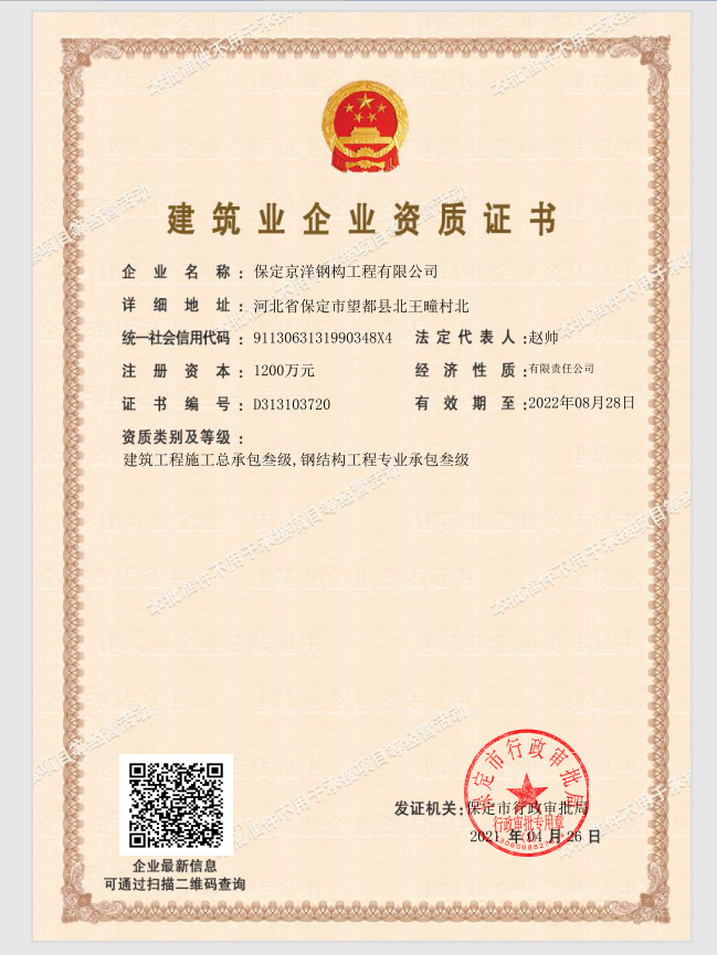 公司主要致力于鋼結(jié)構(gòu)設(shè)計(jì)、制作、安裝、銷售為一體的鋼結(jié)構(gòu)施工專業(yè)企業(yè)。成立于2010年,注冊(cè)資金1200萬(wàn)元。公司擁有國(guó)內(nèi)先進(jìn)的數(shù)控自動(dòng)焊接設(shè)備、H鋼結(jié)構(gòu)生產(chǎn)線、CZ鋼快速切換一體機(jī)、自動(dòng)剪切壓板機(jī)等,優(yōu)良的制作加工車間及檢測(cè)設(shè)備。公司秉承“質(zhì)量求生存,管理出效益”發(fā)展理念,組建了一支高素質(zhì)、高水平的團(tuán)隊(duì)以及責(zé)任明確、職責(zé)清楚、獎(jiǎng)罰分明的管理體系。
